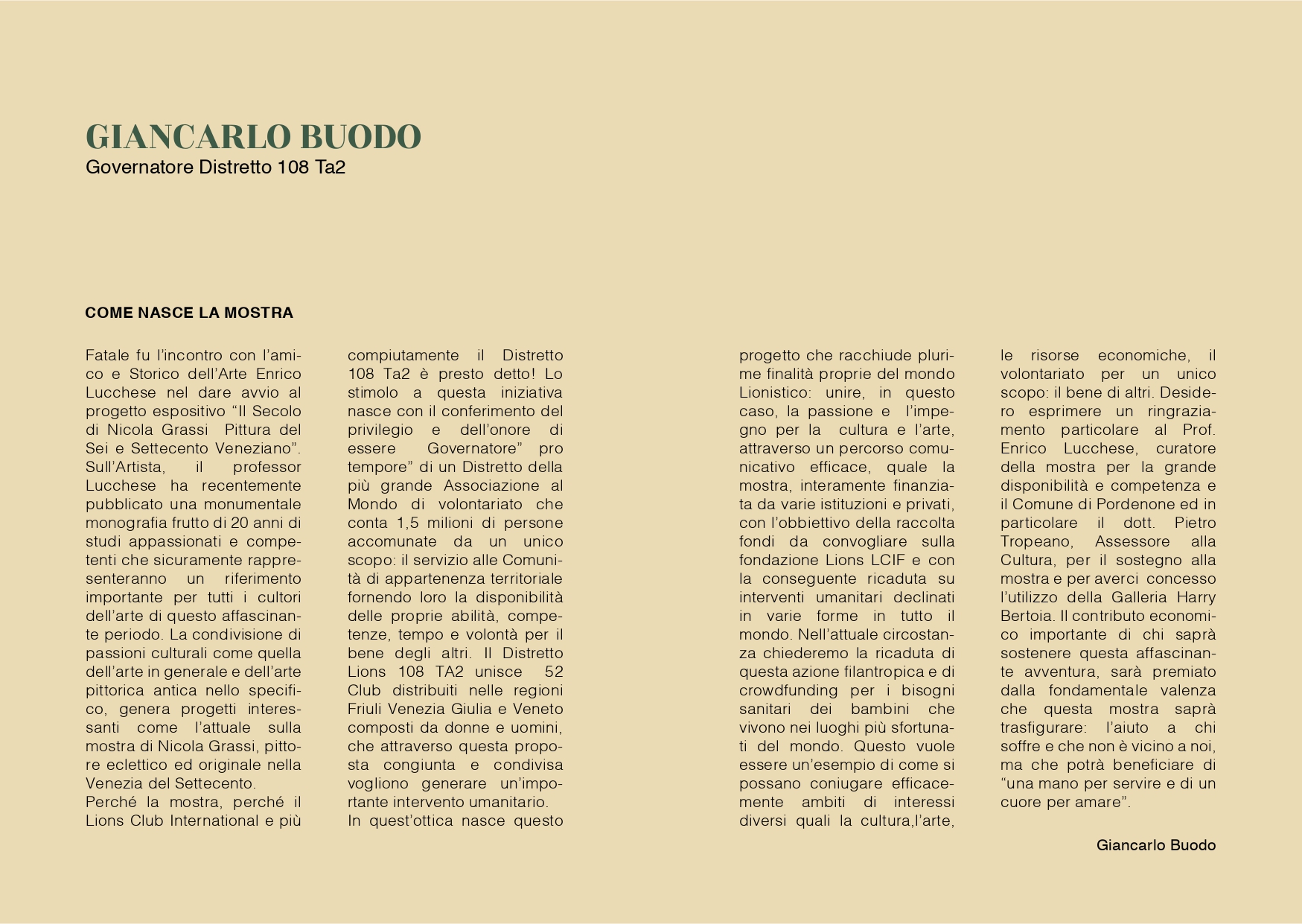 E’ con grande piacere che annunciamo la collaborazione con il LIONS CLUB nell’organizzazione della mostra “Il Secolo di Nicola Grassi – Pittura del ‘600 e ‘700 Veneziano” che si terrà presso la Galleria Harry Bertoia di Pordenone dal 27 Marzo al 10 Luglio 2021.